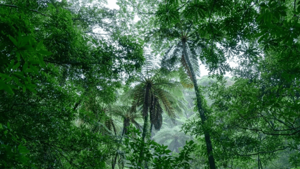 深い森の中に佇む滝。呼吸を整え、水の音に身を委ねる瞑想体験。